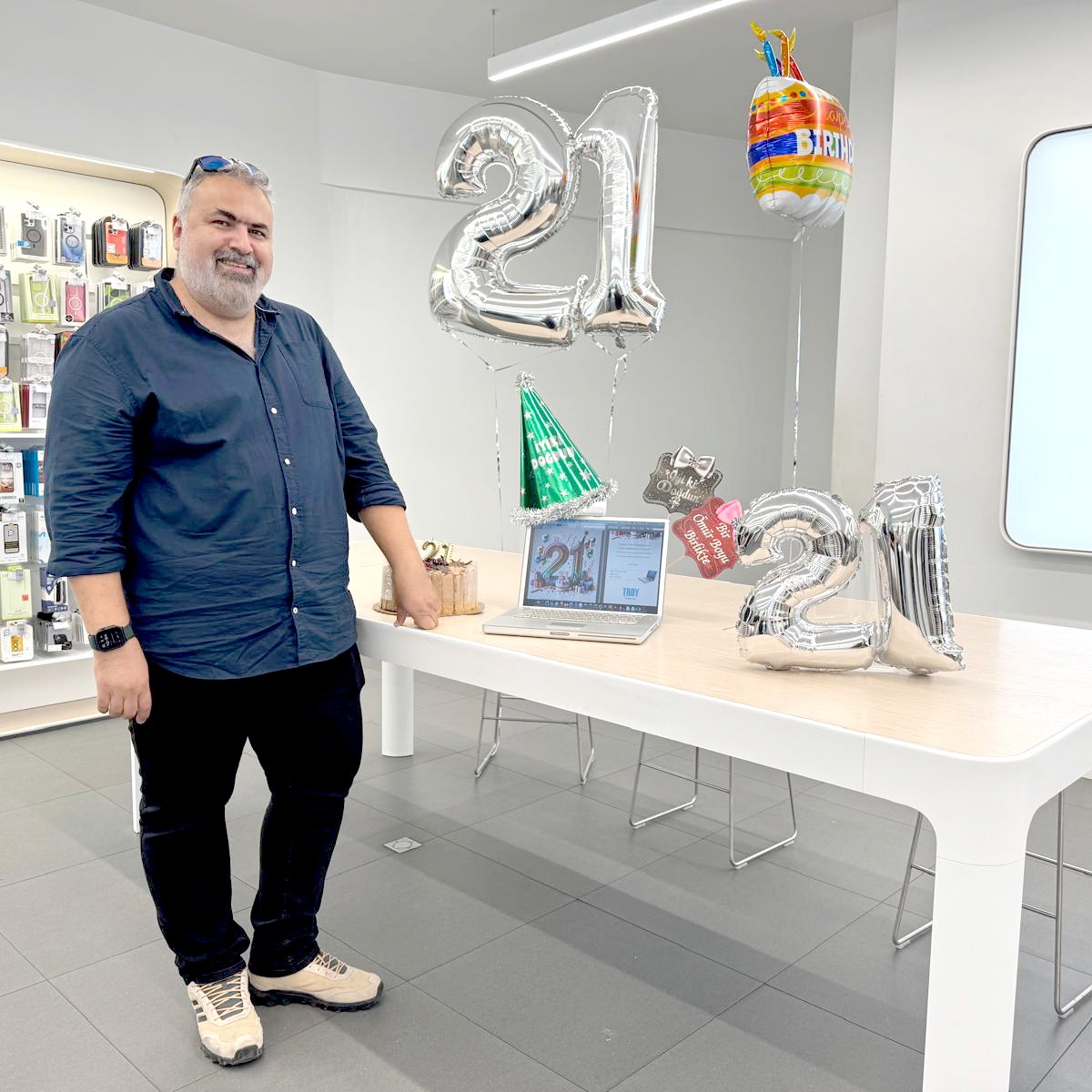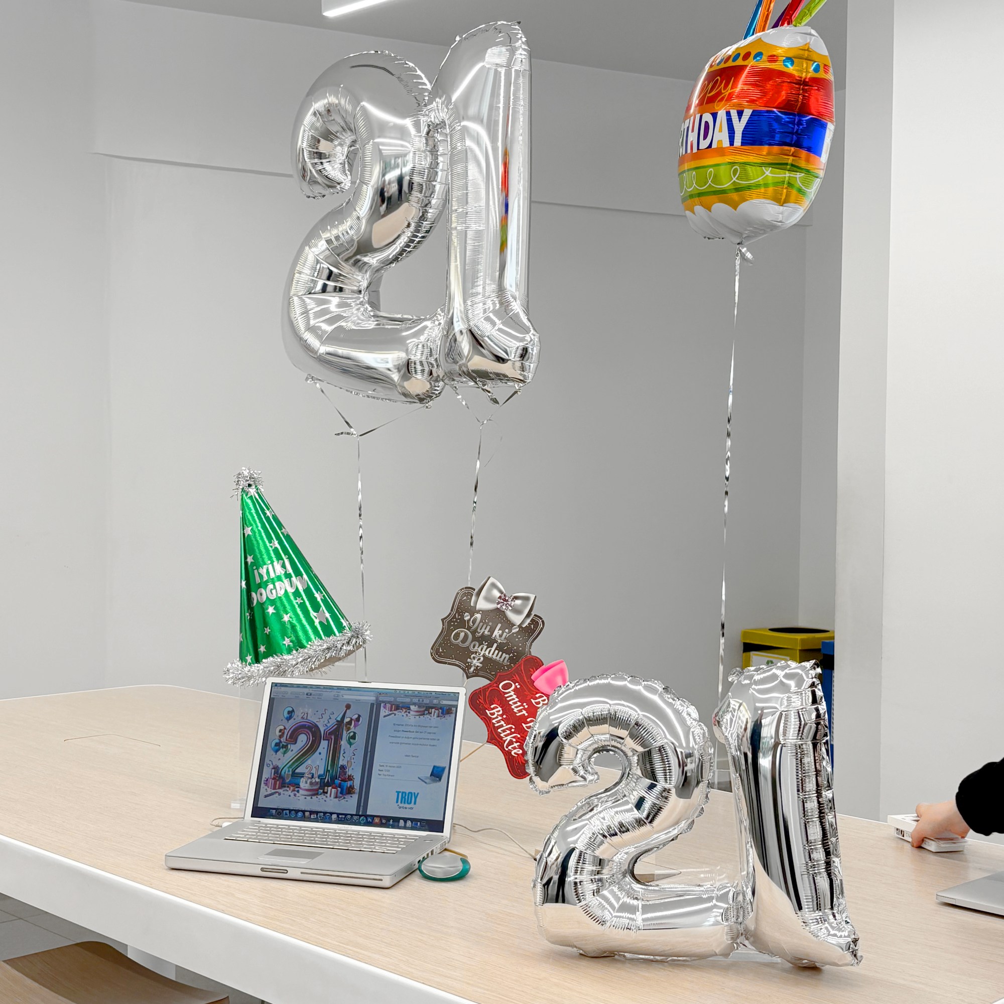 Yıllar içinde PowerBook G4 bilgisayarım, kullanılabilir bir bilgisayar olmaktan çıkıp yavaştan antika statüsüne doğru ilerlerken aklımda onun için bir doğumgünü kutlaması yapma fikri de belirmeye başlamıştı. Şaka yollu olarak arkadaşlarıma “20 yaşına bastığında bir doğumgünü kutlaması yapacağım onun için” demiş de olabilirim. 20. yaşını istemeden de olsa ıskaladık. Ama 21. doğumgününde kendisini satın aldığım Artı Bilgisayar / Troy‘un İstanbul Kanyon AVM‘deki mağazasında bir küçük kutlama yaptık. Kutlamaya kendi arkadaşlarım, Elmakurdu Apple kullanıcı grubundan ve Artı Bilgisayar’dan çeşitli katılımcılar teşrif gösterdiler, sağolsunlar.
