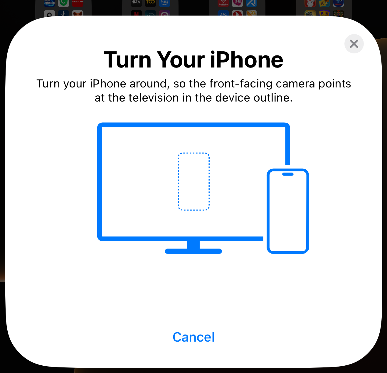 - TV ekranınızda aşağı yukarı bir iPhone büyüklüğünde işaretlenmiş bir görüntü belirecektir. iPhone’un ekranı televizyona bakacak şekilde bu alana doğru tutun.