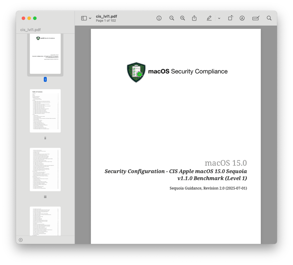 macOS Security Compliance Project ile ilgili katkı sağlayan kuruluşlar ve desteklenen baseline detaylarını öğrenmek için bu adresi inceleyebilirsiniz. Projenin GitHub sayfası üzerinden de bu yazı yazılırken geçerli olan en güncel versiyon olan Sequoia Guidance Revision 2.0‘ı görüp indirebilirsiniz. İncelemek için indirebilirsiniz elbette ama aşağıda adım adım indirip, rapor oluşturmayı anlatacağım. Yani şimdilik GitHub‘dan indirmenize gerek yok. Ama bilmelisiniz ki bu çalışma da statik değil. Düzenli olarak güncelleniyor. Dolayısıyla bookmark’larınıza ekleyip arada bir kontrol etmenizde fayda var.