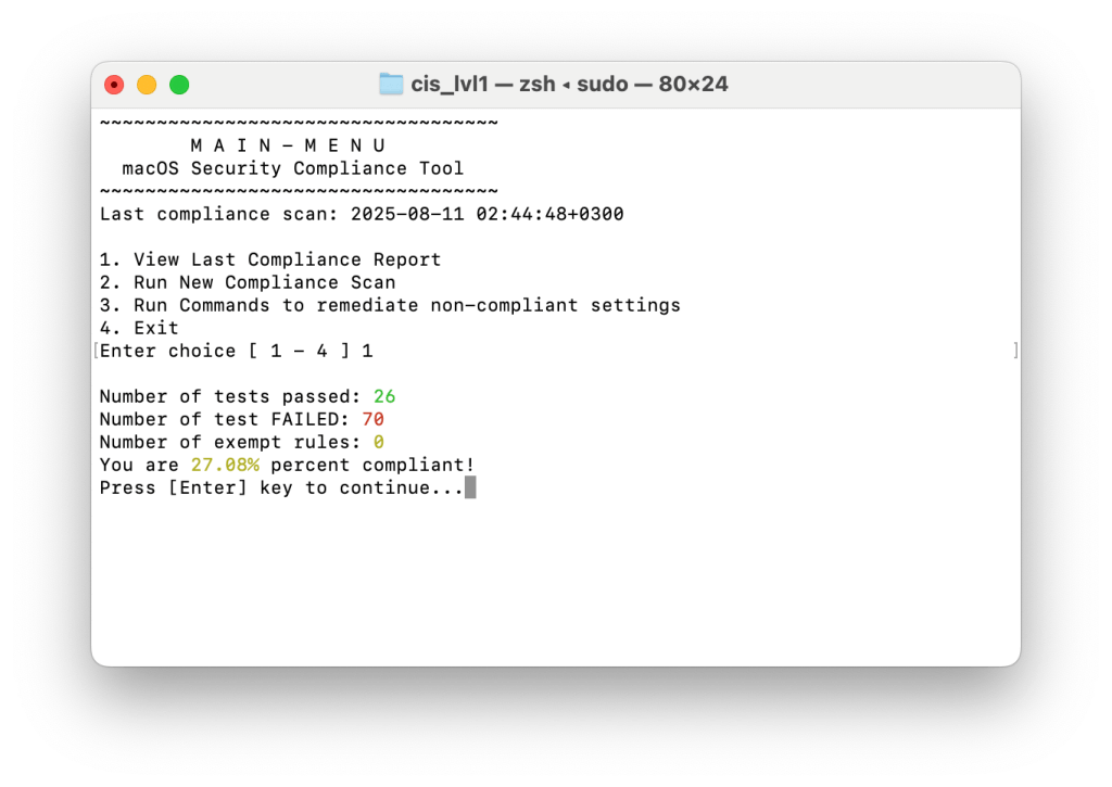 sudo ./cis_lvl1_compliance.sh