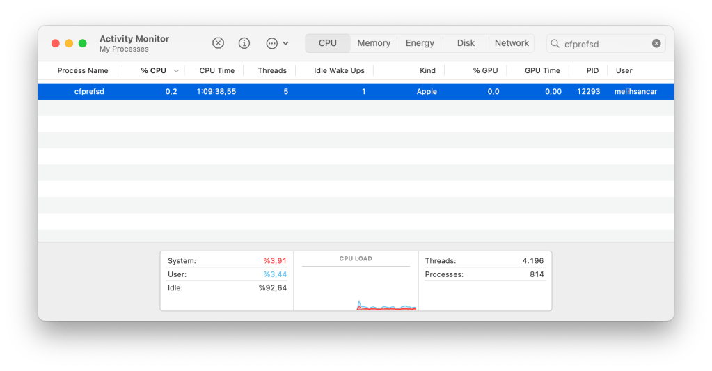 Siz uygulamaya ilişkin ayarları göndermiş olmanıza rağmen Support App hala kendi orijinal ayarları ile açılıyorsa, cache üzerinde kalmış olan eski tercihleri görüyor olabilir. macOS’un sistem genelinde tercihler (preferences) yönetimini yapan cfprefsd isminde bir daemon bulunur. Activity Monitor uygulamasını açıp arama kutucuğuna cfprefsd yazarak bu dameon’a ulaşabilirsiniz. Ardından onu iş bitimine zorlarsanız cache üzerinde tutulan tercihler de silinmiş olacaktır.