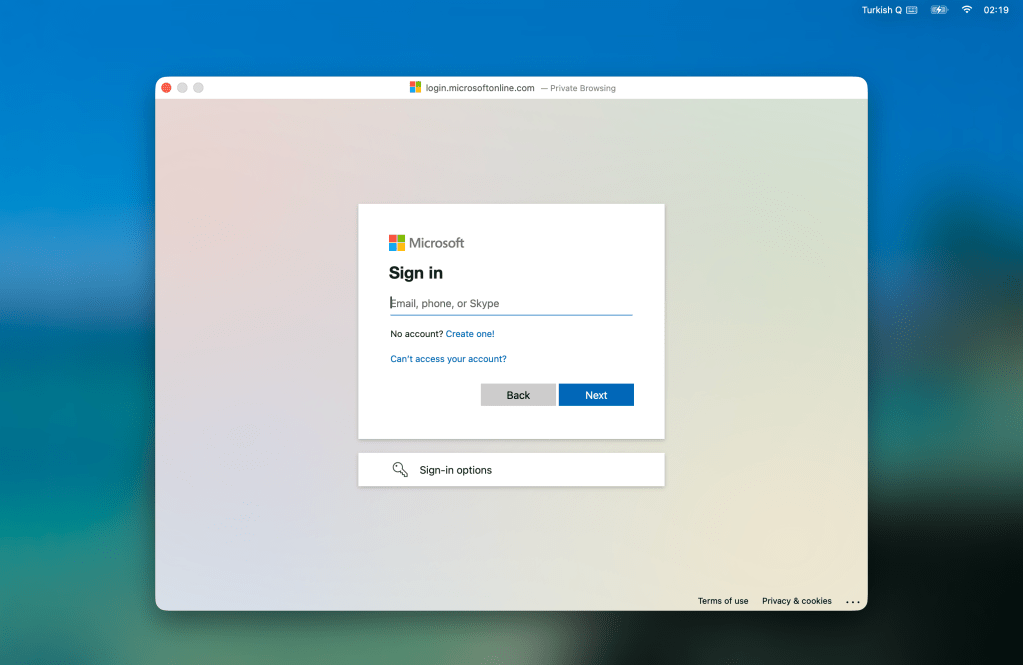 Bu koşullar yerine getirildiyse cihazın ilk açılışı sırasında Setup Assistant ekranları arasında Microsoft Sign-in ekranı gelecektir. Kullanıcı bu alana giriş bilgilerini yazdıktan ve MFA onayını verdikten sonra kayıt işlemi devam eder.