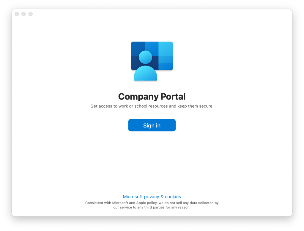 Intune özelinde bunu yapmanın yolu manuel olarak Company Portal uygulamasından geçiyor. Microsoft bize bir URL vermiyor ama bunun yerine Company Portal uygulamasını kullanmamız gerektiğini söylüyor. Company Portal uygulamasını bu adresten indirebilirsiniz. İndireceğiniz yükleyici .PKG formatında gelecektir ve bunu bilgisayara kurmak için Admin yetkisine ihtiyacınız olur. Kurulum tamamlandıktan sonra ilk açılışta kullanıcının karşısına Entra ID’de tanımlı olan kullanıcı bilgilerini girmesi gereken bir ekran gelir.