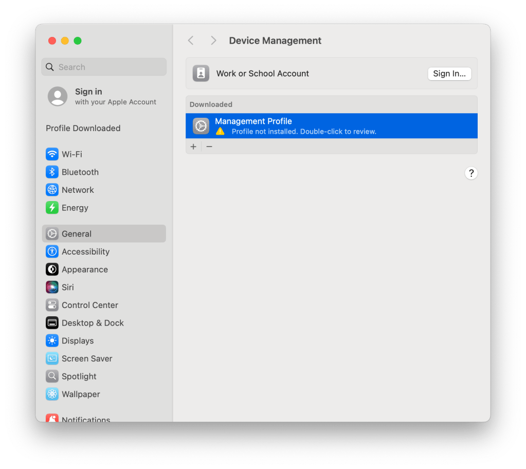Bir Mac daha önce açılmış, bir kullanıcıya verilmiş ve halen kullanımda ise o cihazı sıfırlamadan bir MDM’e kayıt edebilirsiniz. Bu kayıt yönteminin ismi MDM üreticisine göre isim değiştirebiliyor. Ama Apple’ın verdiği isim Device Enrollment. Süreç hemen hemen her MDM çözümü için benzerdir. MDM sunucunuz genellikle bir URL üzerinden kayıt linki sağlar. Kullanıcı o linke girer ve MDM Enrollment Profile‘ı indirir. Admin yetkisi ile profili System Settings üzerinden yükler ve cihaz ilgili MDM’e kayıt edilmiş olur.