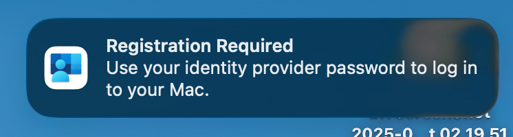 Setup Assistant adımlarını tamamlayıp masaüstüne ulaştıktan sonraki süreç ise Device Enrollment işlemindeki registration işleminin oldukça benzeri. Kullanıcının karşısına Registration Required yazılı bir bildirim çıkar. Kullanıcı bu bildirime tıkladığında Single Sign-On for Mac isimli bir sayfa açılır. Önce lokal hesabının şifresini, sonra da Entra ID‘de tanımlı olan kullanıcı adı ve parolasını girdiğinde mevcut lokal kullanıcı, Entra ID‘deki kullanıcı bilgileri ile eşlenmiş olur. Kullanıcı Entra ID şifresini girdikten sonra MFA için Microsoft Authenticator ile de doğrulama yapılması gerekecektir. En son adımda eşlemenin yapılmış olduğuna dair bir bildirim daha yapılır.