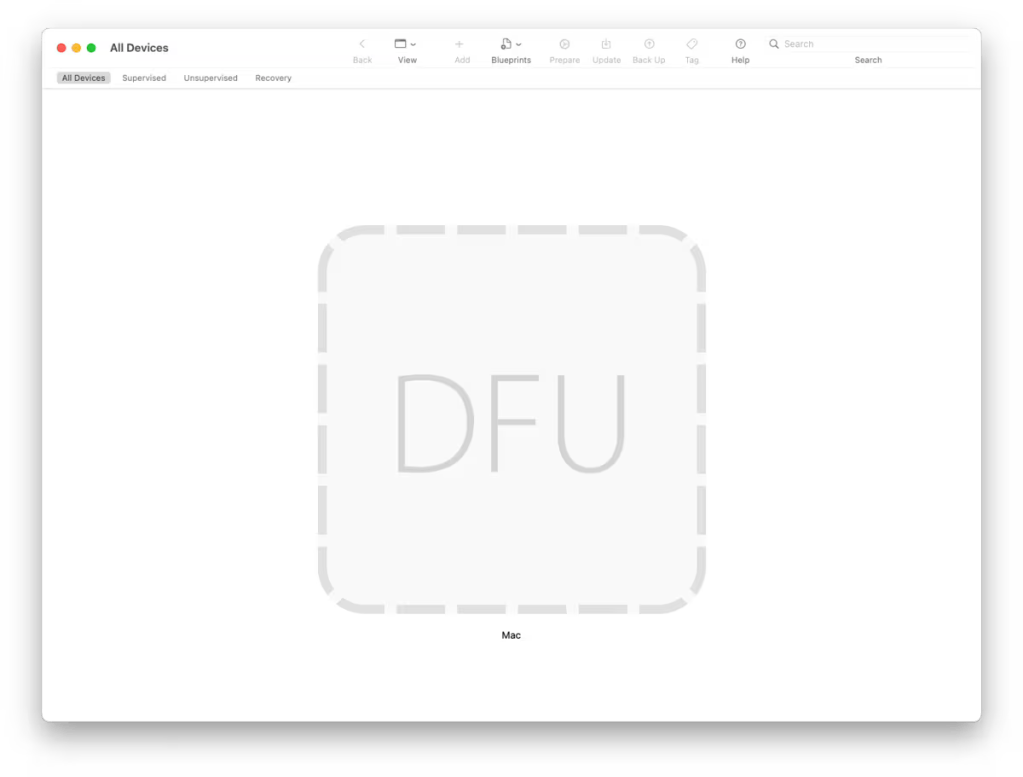 4. Diğer bilgisayarda Apple Configurator uygulamasını açın. Bu adım şart değil. Eğer isterseniz DFU modundaki cihazı Restore etmek için doğrudan Finder’ı da kullanabilirsiniz.