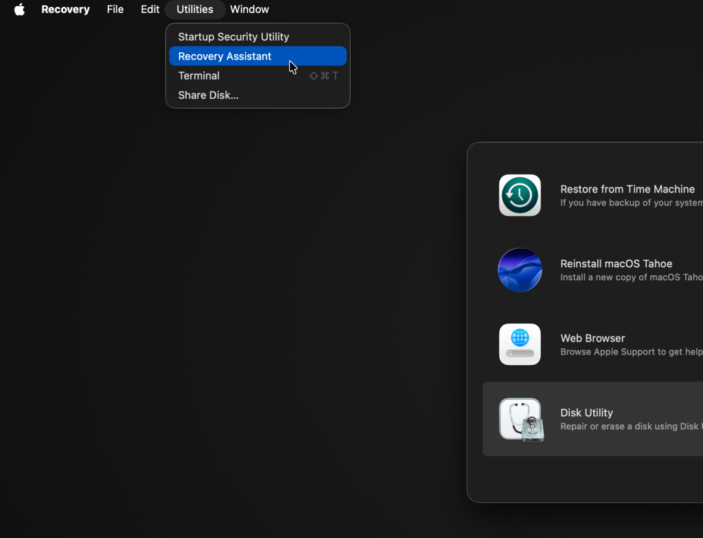 macOS 26 (Tahoe) ile birlikte macOS Recovery ortamına yeni bir araç eklendi: Recovery Assistant. Bu yeni araç, bilgisayarınızı macOS Recovery partition’dan açtığınızda Utilities menüsünde bulunabilir. Recovery Assistant, sistemin düzgün bir şekilde açılamaması durumlarında otomatik olarak devreye girecek bir kurtarma asistanı alarak görev yapacak bir araç. Apple bu konuda bir makale de yayınladı. İlgili makaleye bu adresten ulaşabilirsiniz.