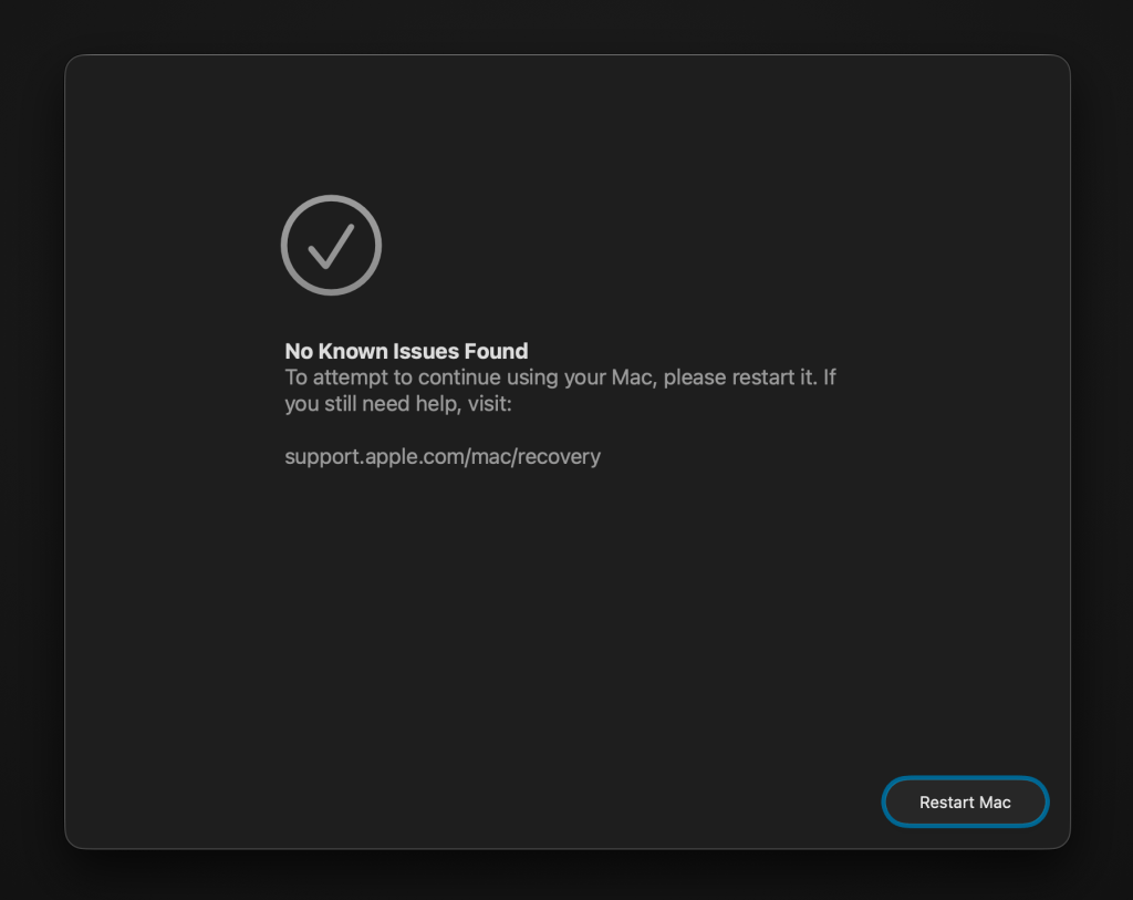 Recovery Assistant kendi başına çözebileceği bir sorun yakalarsa onu kendi kendine çözüyor. Ancak kendi sınırlarını aşan durumlarda macOS’u yeniden yükleme gibi ek seçeneklere yönlendiriyor.