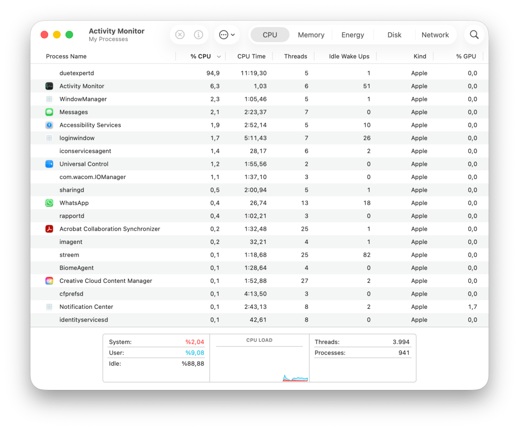 Mac’lerimizdeki görev yöneticisi olan Activity Monitor ile bizim kullandığımız veya arka planda çalışan tüm uygulamaların ne kadar sistem kaynağı tükettiğini görebiliriz. Gerektiğinde herhangi bir uygulamayı ya da görevi Activity Monitor üzerinden sonlandırabiliriz. Daha önceden hiç kullanmadıysanız Activity Monitor Macintosh HD/Applications/Utilities klasöründe bulunur.