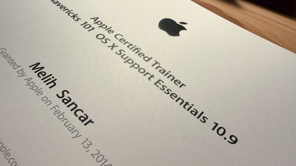 Apple’ın bir sertifika programı bulunuyor. Yeni de değil. yaklaşık 20 senedir var. Microsoft, Cisco veya diğer üreticiler kadar bilindik olmasa da hatırı sayılır bir miktarda kişi Apple sertifikalarına sahip. Evet ülkemizde de…